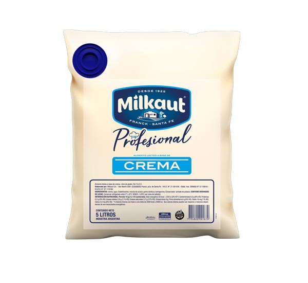Viene en un práctico envase de plástico de 5 litros, ideal para uso profesional en cocinas y pastelerías. No es apta para veganos.